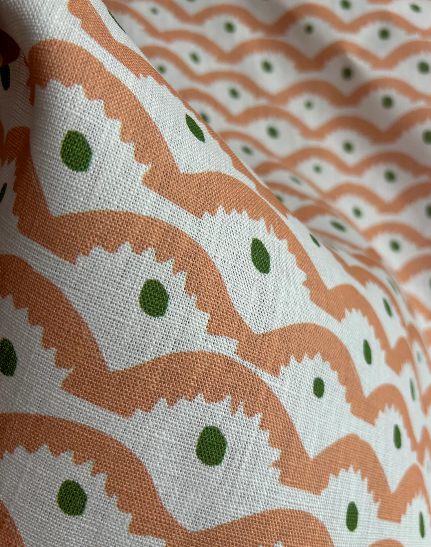 Elevate any room with our Wiggly Squiggly linen, inspired by Mondrian's "Boogie Woogie." Each line dances across the fabric, infusing it with playful energy and adding a touch of elegance. Available in two vibrant colorways—blue and red and peach —this linen is designed to bring joy and sophistication to your home.