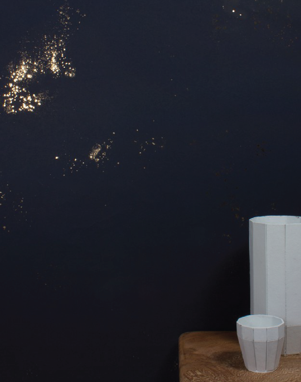 Black and gold fleck illustration on a navy background