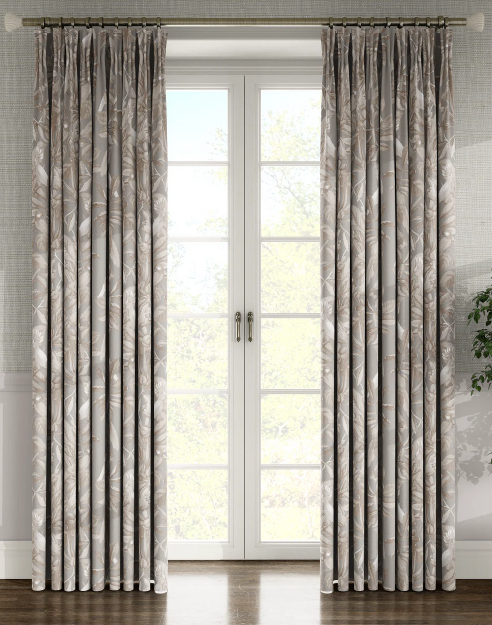 The Passiflora Collection is a wild and tropical labyrinth. Inspired by the Colombian rainforest, the detailed birds and butterflies are surrounded by oversized ferns deep in the tropics. The bold design is a large canopy creating a pattern that lures you into the South American jungle. Available in four colors, Ammonite, Antique, Sage and Vardo.