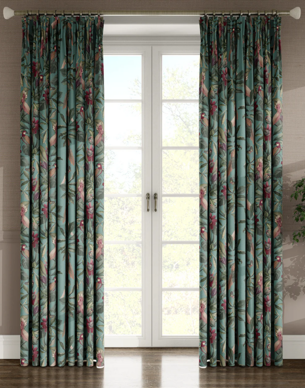The Passiflora Collection is a wild and tropical labyrinth. Inspired by the Colombian rainforest, the detailed birds and butterflies are surrounded by oversized ferns deep in the tropics. The bold design is a large canopy creating a pattern that lures you into the South American jungle. Available in four colors, Ammonite, Antique, Sage and Vardo.