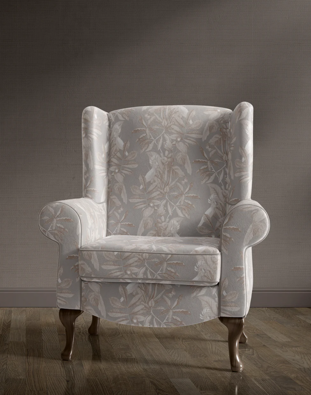 The Passiflora Collection is a wild and tropical labyrinth. Inspired by the Colombian rainforest, the detailed birds and butterflies are surrounded by oversized ferns deep in the tropics. The bold design is a large canopy creating a pattern that lures you into the South American jungle. Available in four colors, Ammonite, Antique, Sage and Vardo.