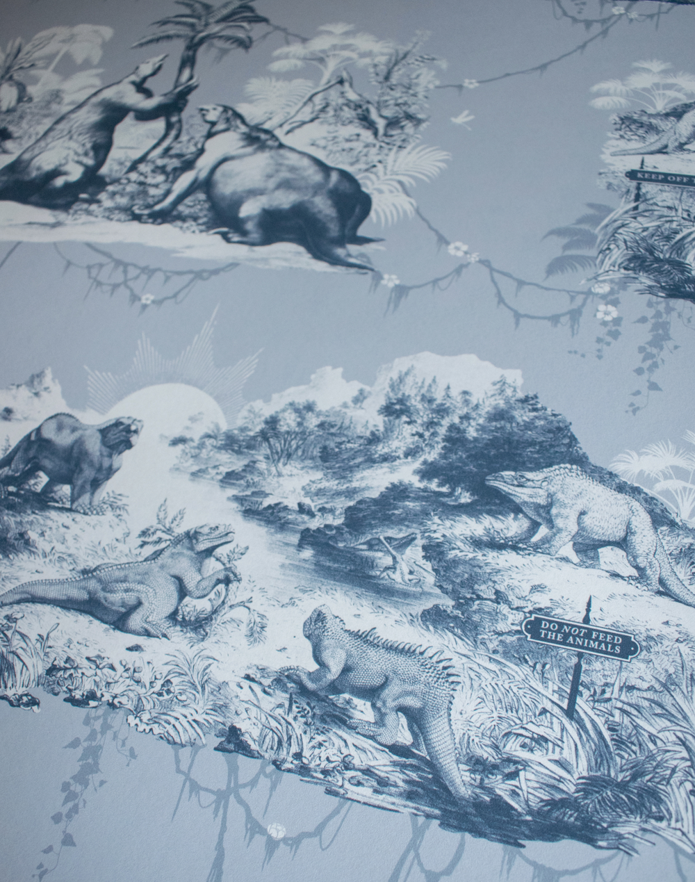 Taking inspiration from Benjamin Waterhouse Hawkin’s elaborate Victorian theme park at Crystal Palace, South-East London. Featuring a plethora of prehistoric beasts as they skulk in the bushes and frolic in the water, you’ll also notice the Victorians of the time as they wander through their Jurassic fantasy world. This detail-rich, large scale wallpaper will bring an artful ambiance to any interior.