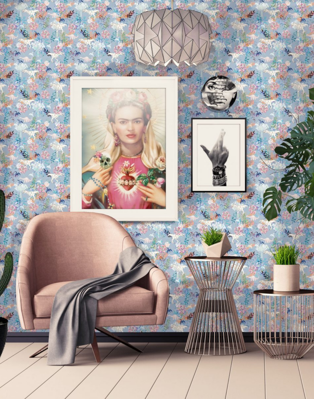 ‘Fleurassic Park’ is a collection born of magic and fantasy. Fleurosaurous Rex is a design for people who want more out of their wallpaper. They want art. They want intrigue. They want beauty. They want a statement. A gorgeous design for girls and boys alike. Gaze in wonder at the hand illustrated and painted elements allowing you to get lost within the story of this collection, let your imagination run wild. For those quirky interior spaces, not just for children.