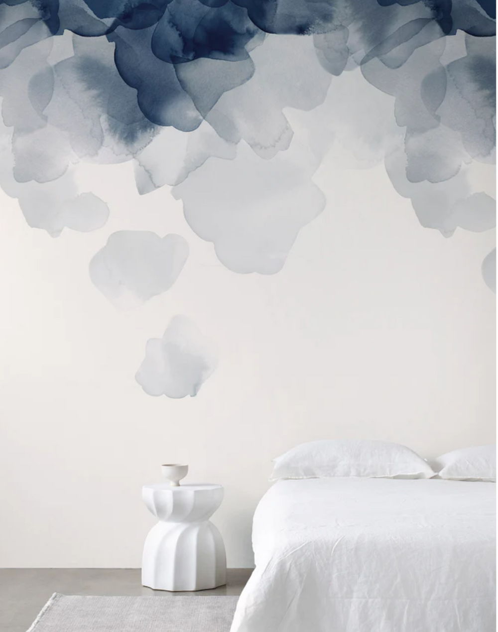 Layers of hand-painted watercolor flow across the paper, designed to bring restfulness to a room, adding a delicate and decorative touch.