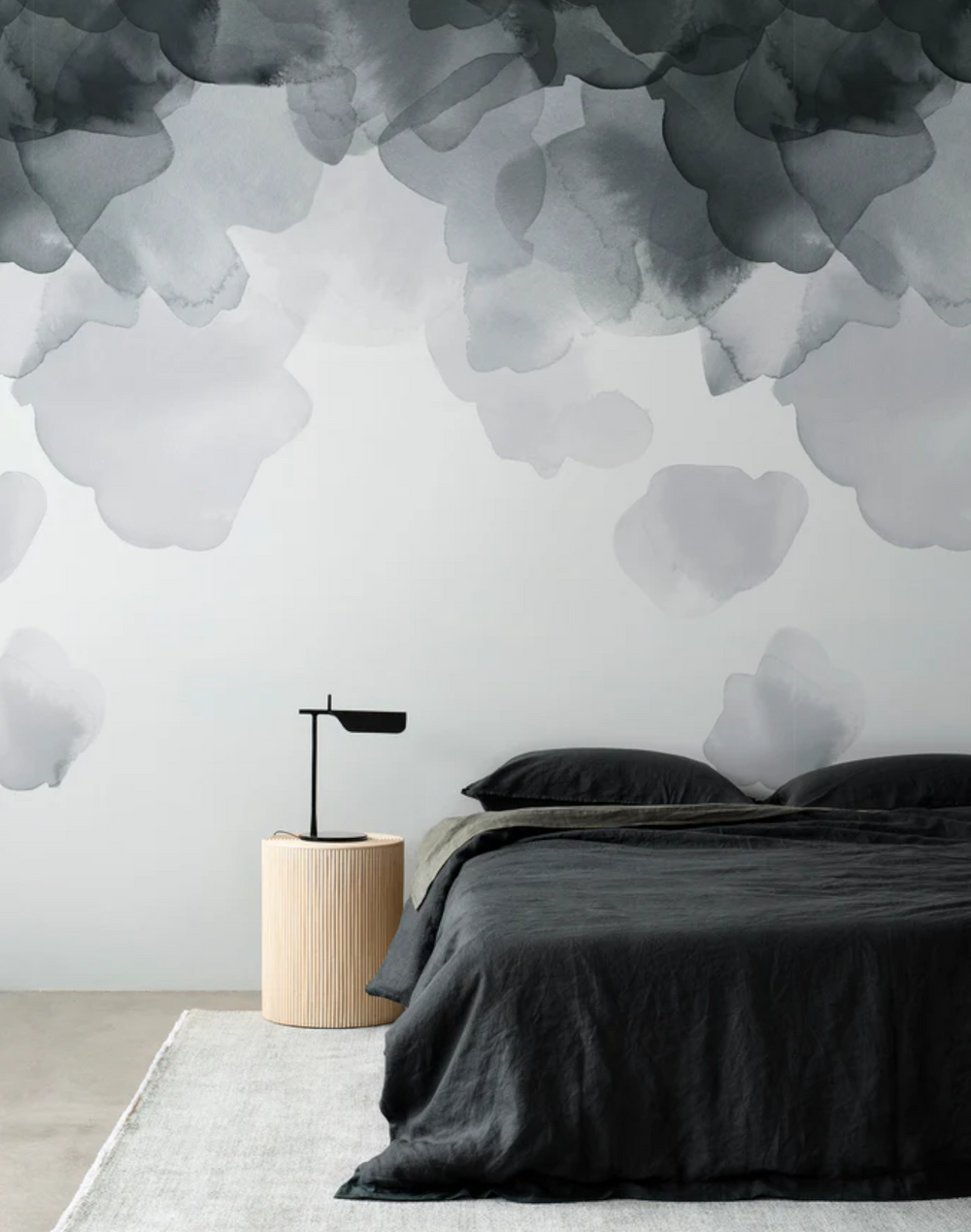 Layers of hand-painted watercolor flow across the paper, designed to bring restfulness to a room, adding a delicate and decorative touch.