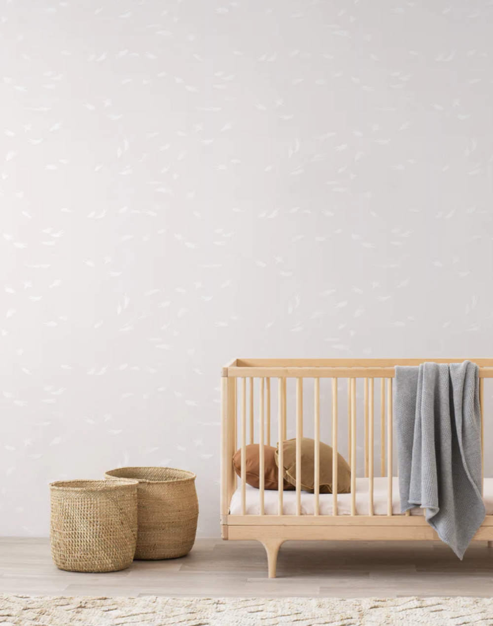 Watercolor feathers flow across the paper, designed to bring restfulness to a room, adding a delicate and decorative touch.