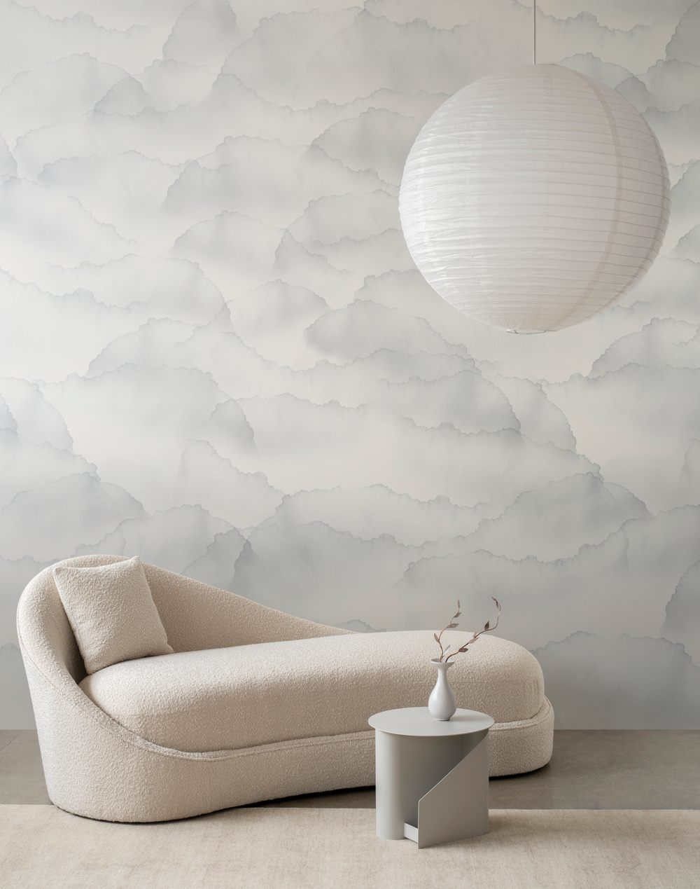 Layers of hand-painted watercolor flow across the paper, designed to bring restfulness to a room, adding a delicate and decorative touch.