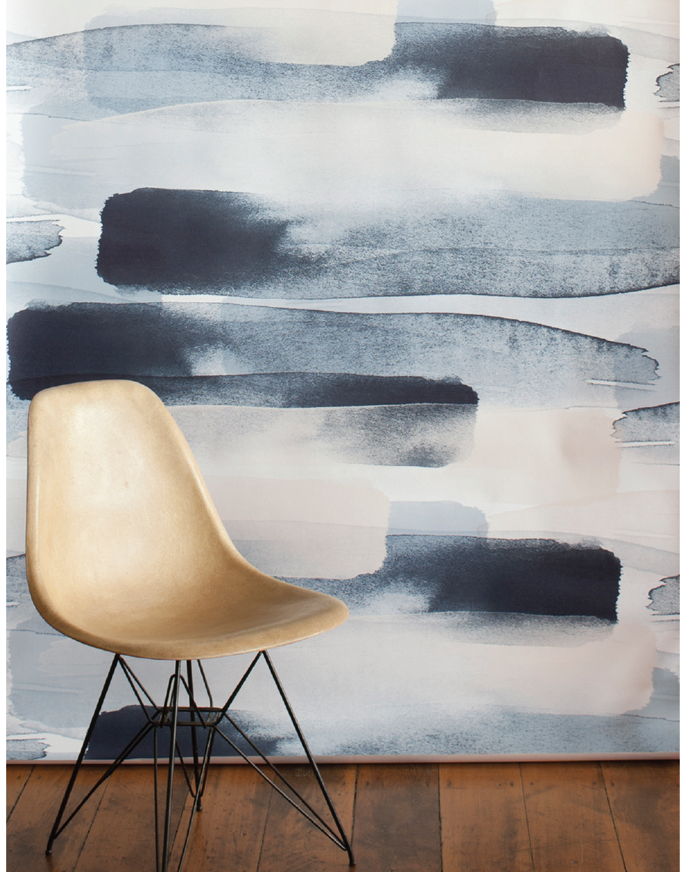 The fluid and languid River print is reproduced on a wide width low gloss surface wallpaper. Layers of hand-painted watercolor flow across the paper, designed to bring restfulness to a room, adding a delicate and decorative touch.