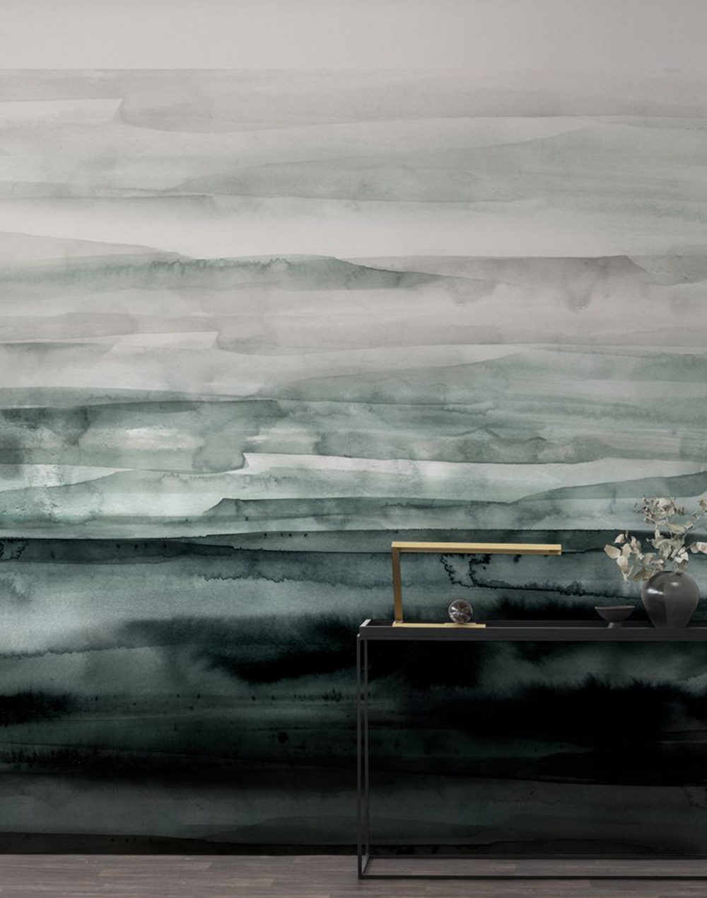 Layers of hand-painted watercolor flow across the paper, designed to bring restfulness to a room, adding a delicate and decorative touch.