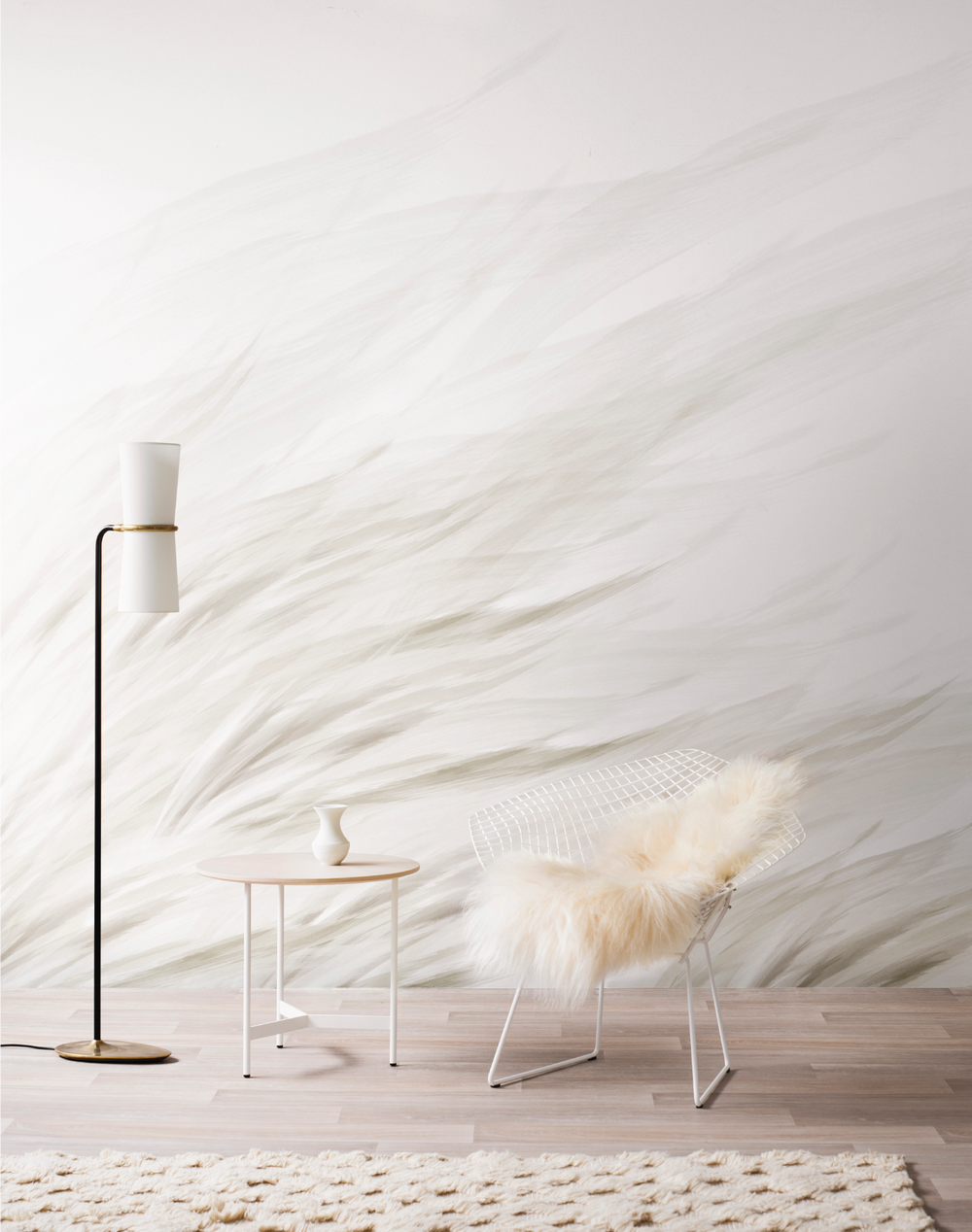 Layers of hand-painted watercolor flow across the paper, designed to bring restfulness to a room, adding a delicate and decorative touch.
