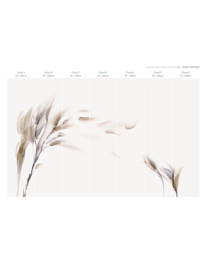 Willow is an exploration of gentle form and movement. This large-scale mural captures the essence of the natural world, with gentle forms that bend and yearn in the breeze, reminiscent of sylvan forms. Originally hand-painted, this mural format is perfect for creating an organic feature across large walls.
