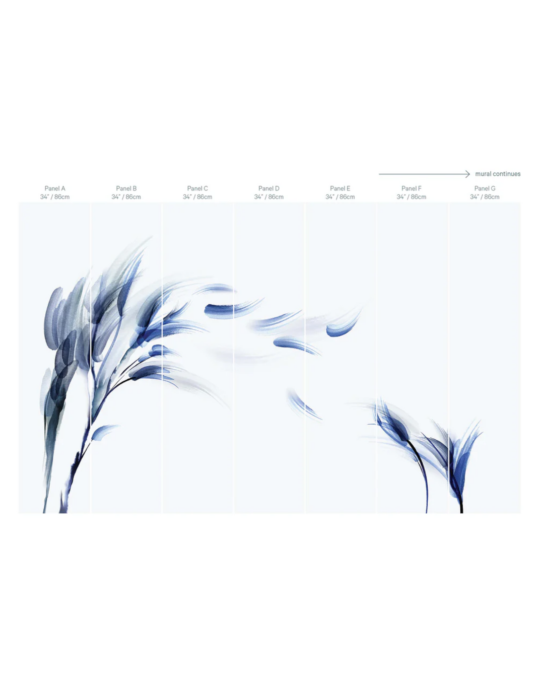 Willow is an exploration of gentle form and movement. This large-scale mural captures the essence of the natural world, with gentle forms that bend and yearn in the breeze, reminiscent of sylvan forms. Originally hand-painted, this mural format is perfect for creating an organic feature across large walls.