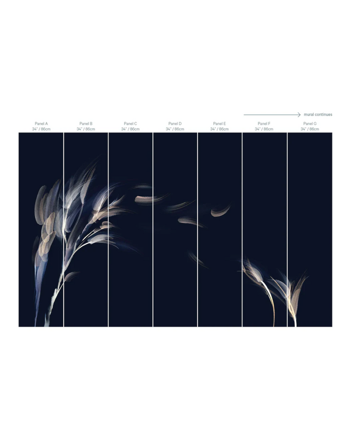 Willow is an exploration of gentle form and movement. This large-scale mural captures the essence of the natural world, with gentle forms that bend and yearn in the breeze, reminiscent of sylvan forms. Originally hand-painted, this mural format is perfect for creating an organic feature across large walls.