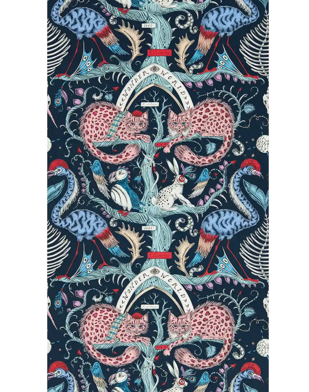 The Amazon Wallpaper is part of our magical Animalia collaboration with interior experts Clarke & Clarke. This design is inspired by the jungle scenes in the Amazon, featuring jaguars hidden amongst the foliage and playful parrots in the trees. Channel exotic maximalism with this vibrant color way, rich with opulent shades of blue and teal with a contrasting splash of orange, the perfect way to turn your home into a maximalist dream.