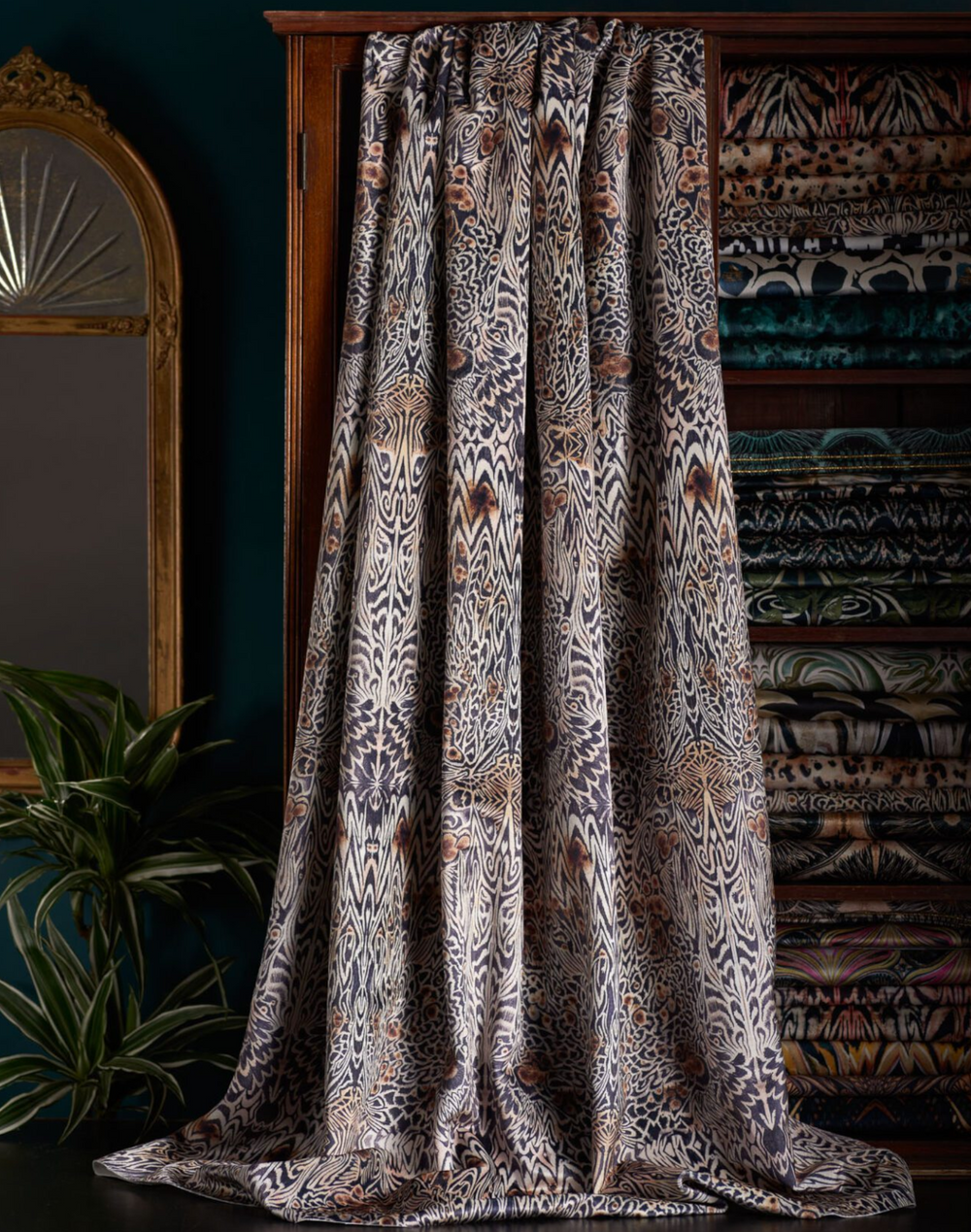 Our newest leopard pattern, Vespertine, features butterfly undertones from the 1920s. Soft pinks blend with black, coffee, and nude hues in this lovely and adaptable pattern.
