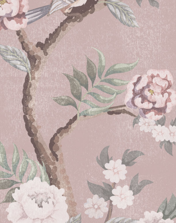 An exotic and romantic Chinoiserie wallpaper, with a stunning distressed texture and beautiful detailing.