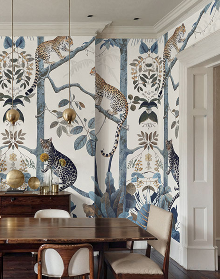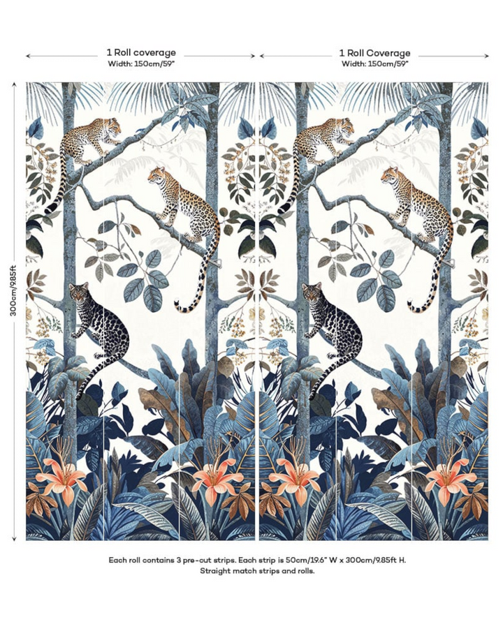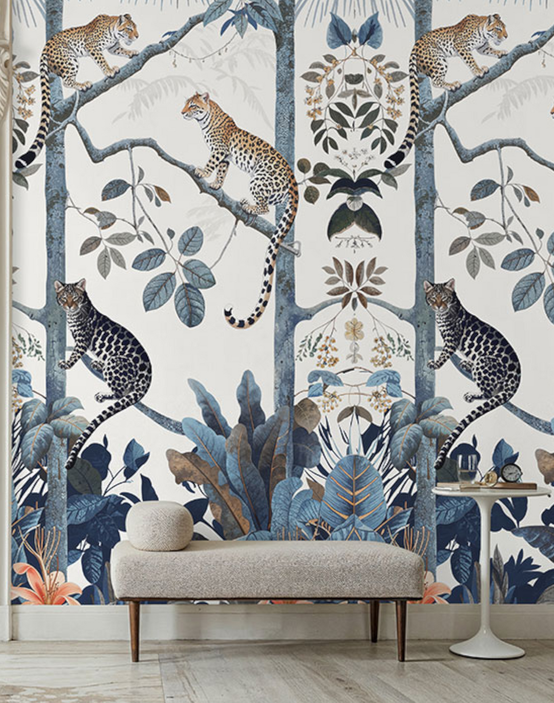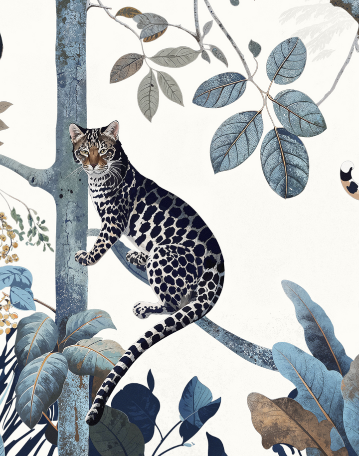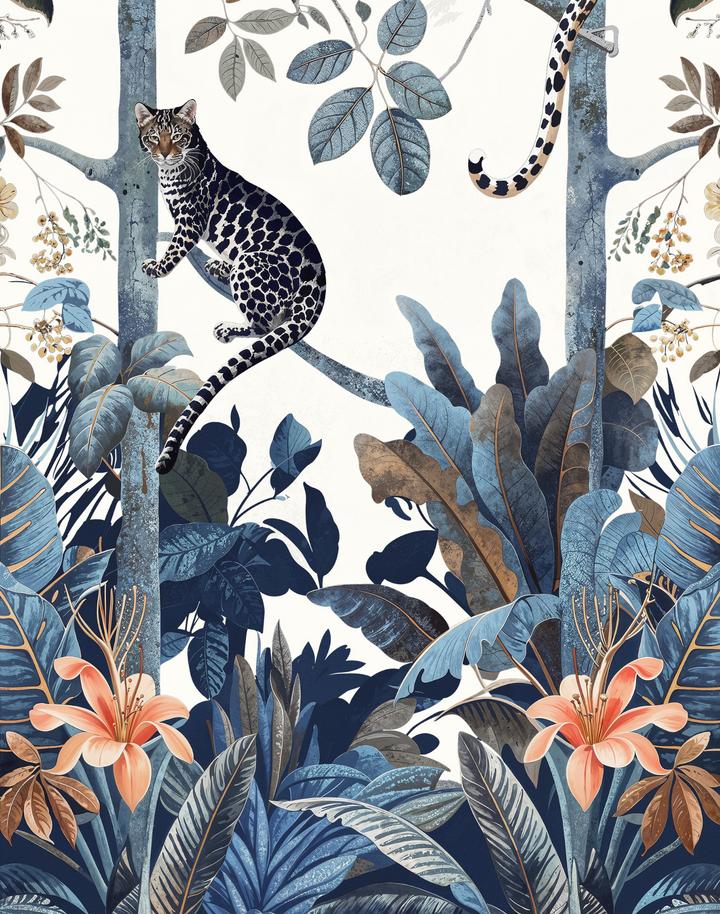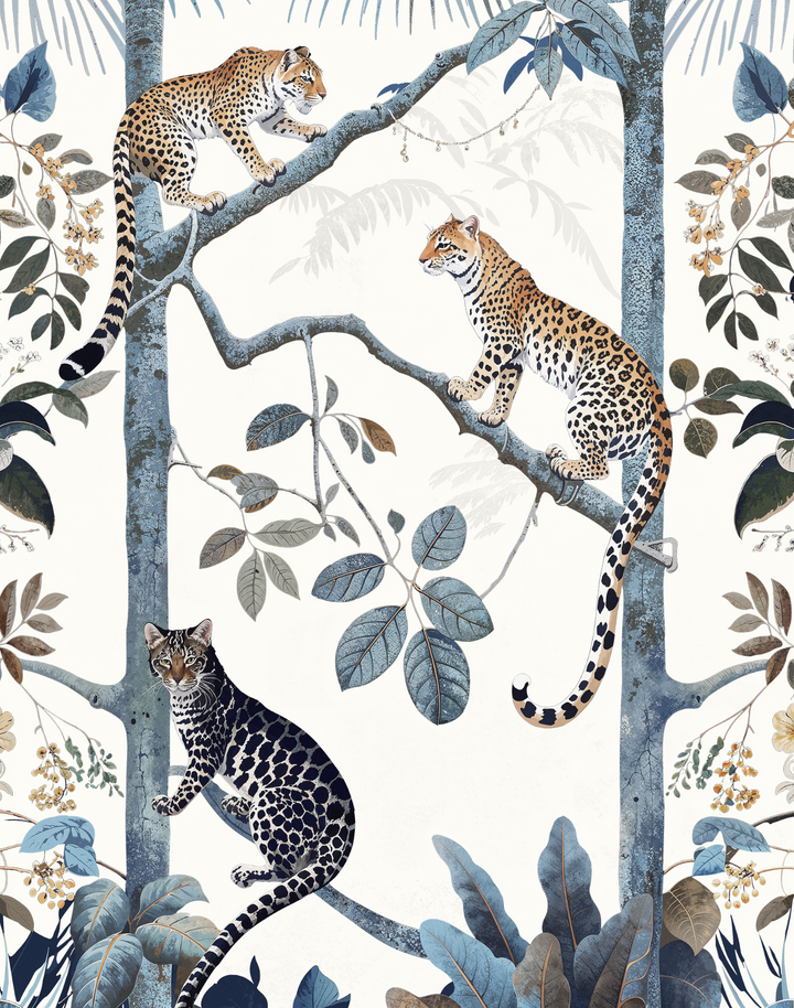 Elevate your space into a serene tropical oasis with the “Panthera White”, our white leopard wallpaper. This design brings a touch of the wild jungle to your interiors with its exquisite illustration detail and premium quality. Each Panthera White panel is a work of art, featuring majestic leopards poised among lush foliage, exuding the vibrant essence of tropical wallpaper. Perfect for various interior design schemes, from modern minimalist to boho chic, this white leopard wallpaper transforms rooms into a luxurious escape. Its composition harmonizes with both bold and understated décors, promising an ambiance that’s as dynamic as nature itself.
