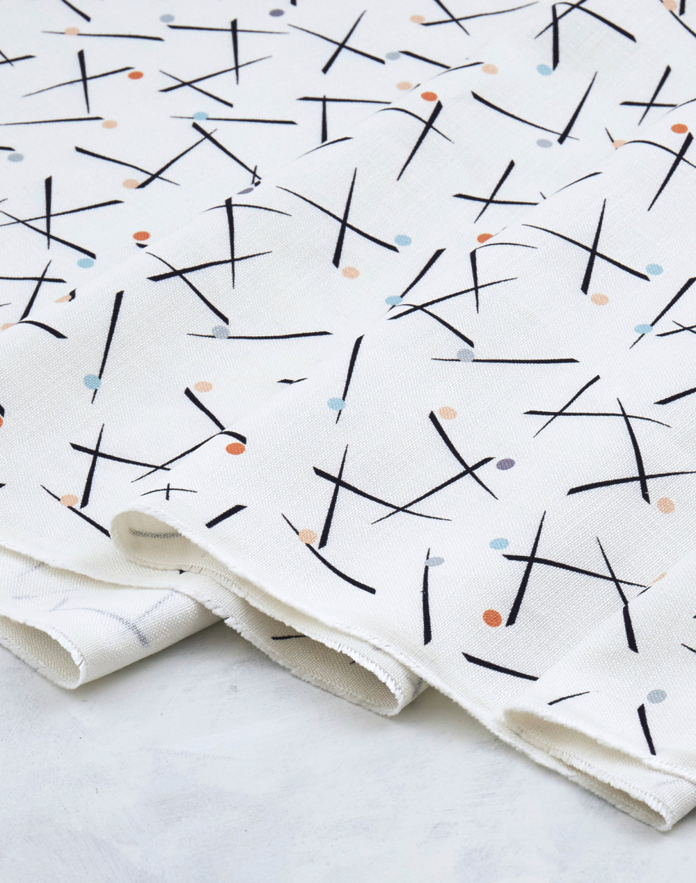 This beautiful Sticks fabric is part of our Archive Collection and is based on a simple French shirting fabric design from the late 1880’s. It could be depicting sewing pins or taking inspiration from botanical texts and illustrations, either way it is lively and elegantly striking.
