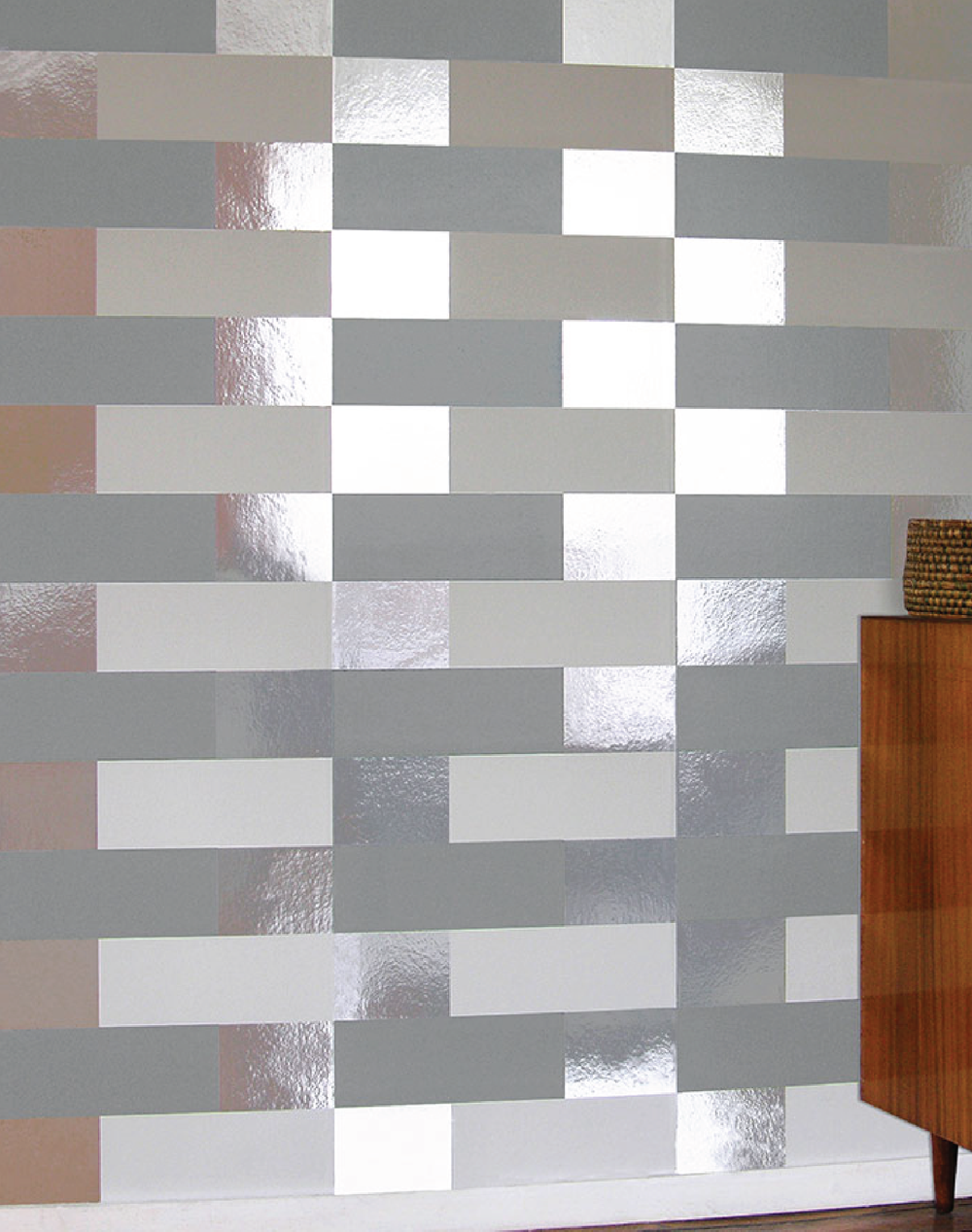 The powerful contrast of metallic and matte bold elements give Erica Wakerly’s Block design a distinctive modern elegance. Developed to create atmosphere and impact, this geometric wallcovering reflects light differently throughout the day, making it the perfect backdrop for any interior.
