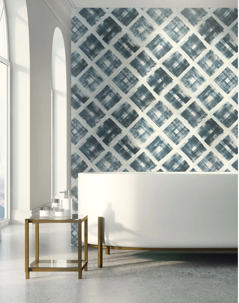 Clays Hatch wallpaper takes inspiration from traditional clay tiles. Offset layered brush strokes create a reimagined rhombus repeat pattern of Moorish sophistication.