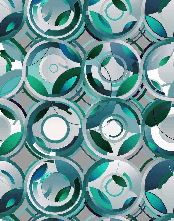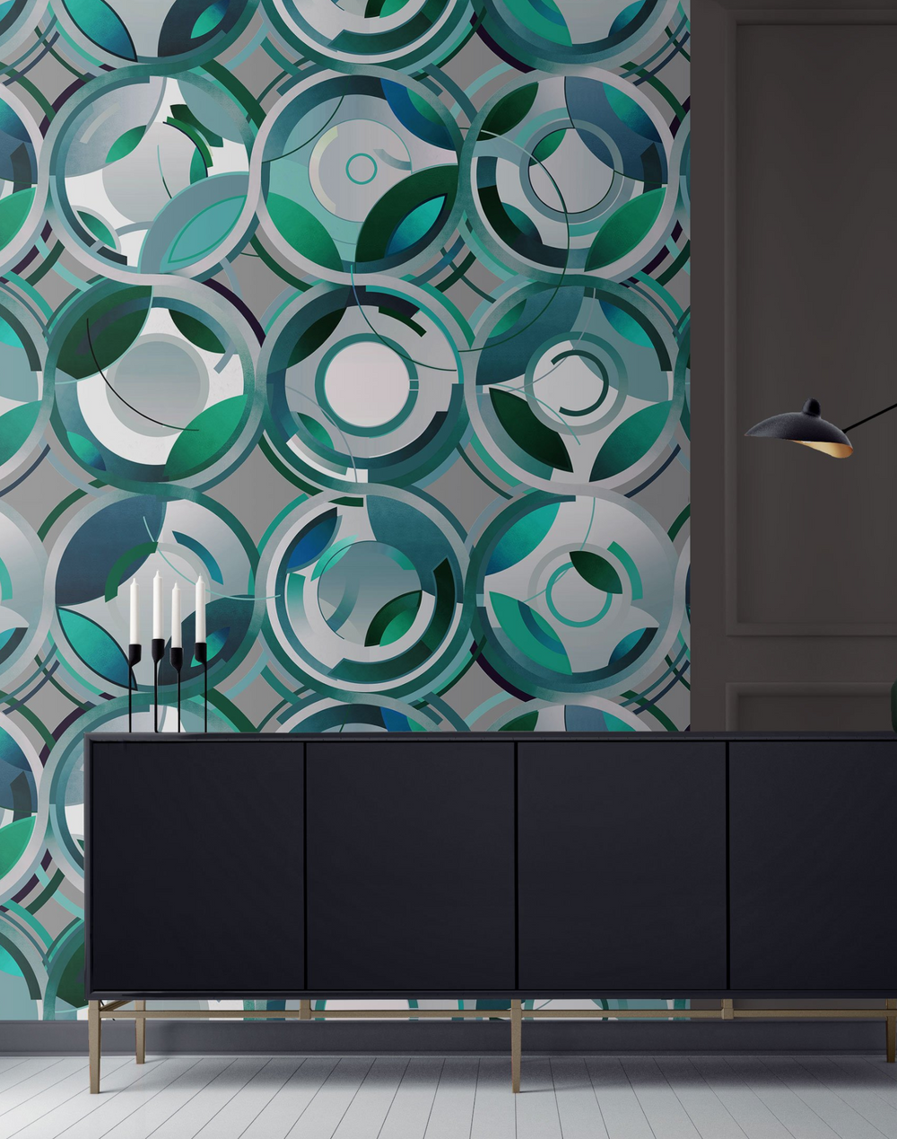 Cylinders is a dramatic reinvigoration of the timeless, geometric elegance of Art Deco. Taking the circle as the basic form, this shape is energised through dynamic interplay and seemingly endless variations upon a theme. Inspired by technological development, this design is a paean to progress and innovation. Water-based inks give the coloration a painterly effect, creating gradations and combinations that suffuse the design with a sense of depth. Printed onto super-wide rolls, this expansive, futuristic design seems to push the boundaries of the possible.