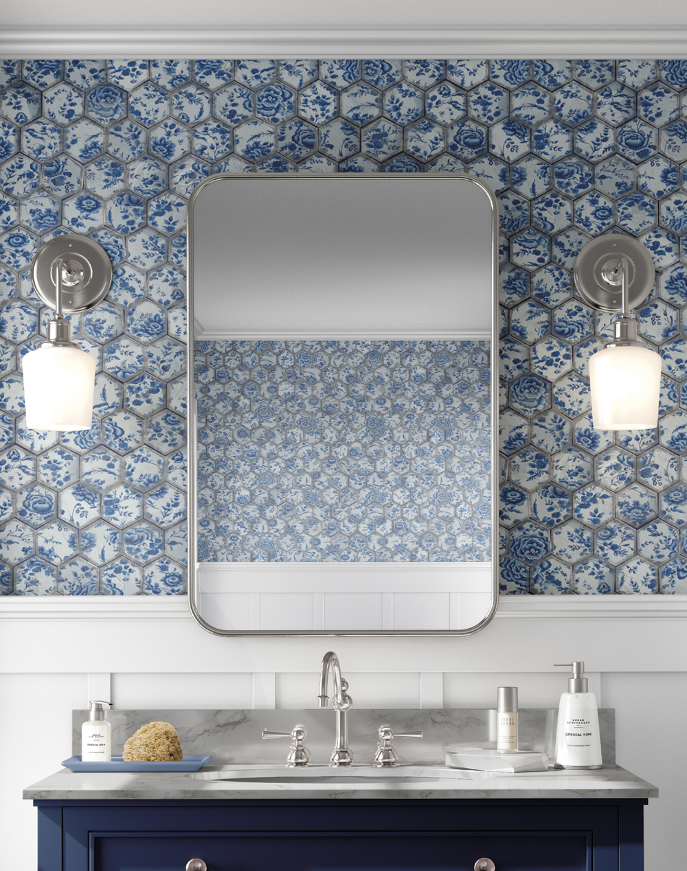 A classic geometric hexagon copper tile look, highly detailed and completely convincing.
