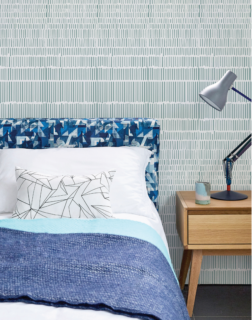 Linear designed by Andrew Scott for Flock. This elegantly simplistic line pattern in grey blue is based on the architectural forms of harbour dwellings. Printed digitally in Lancashire on 108gsm coated on non woven paper made from sustainably sourced wood. Paste the wall product.