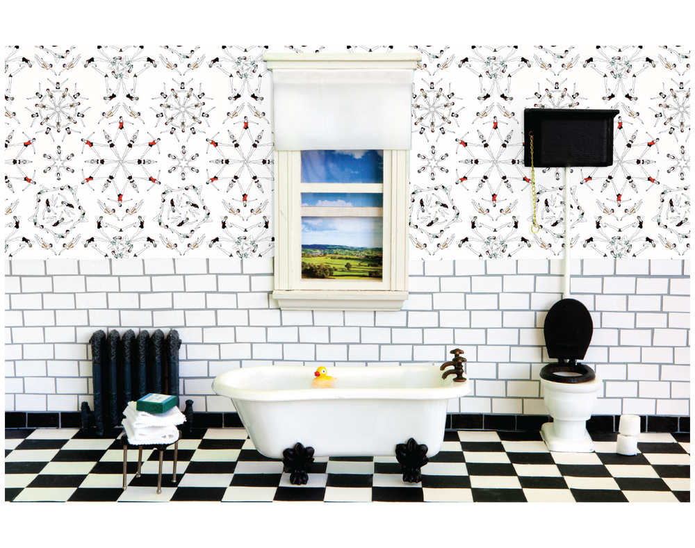 The sassy synchronized swimmers in this Splash! wallpaper by Dupenny are perfect for adding a drop of lido fun time to your bath time. This popular pattern was inspired by bathing beauty and Hollywood legend, Esther Williams. Splash out and create something totally unique in your wash room with this fun, playful wall covering. Subtle hues of duck egg, sand and poppy red enhance the retro pool vibes in this color rendition.