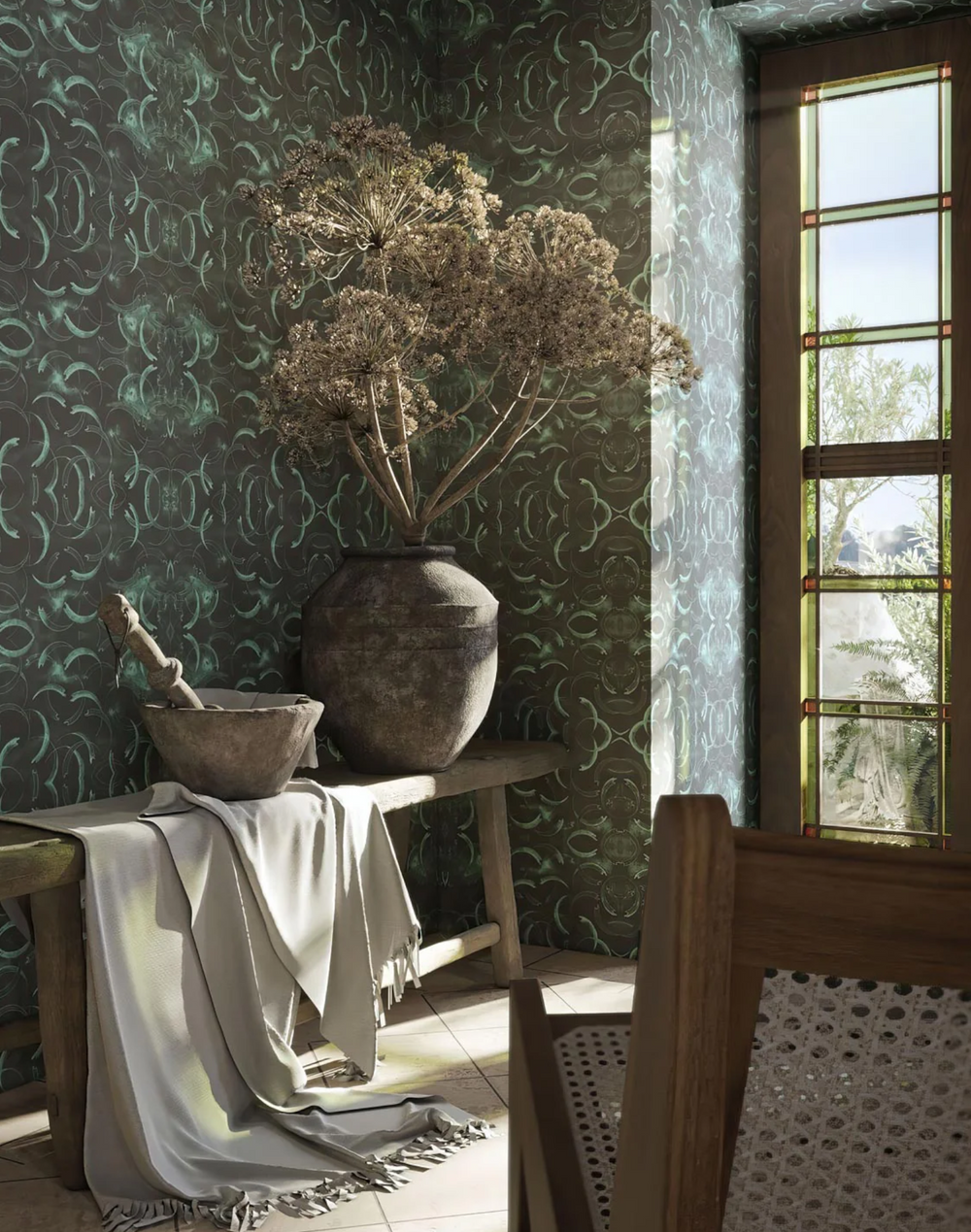 Damask N°1 wallpapers features enchanting lines and intricate interweaving that enhance harmonious and subtle forms.