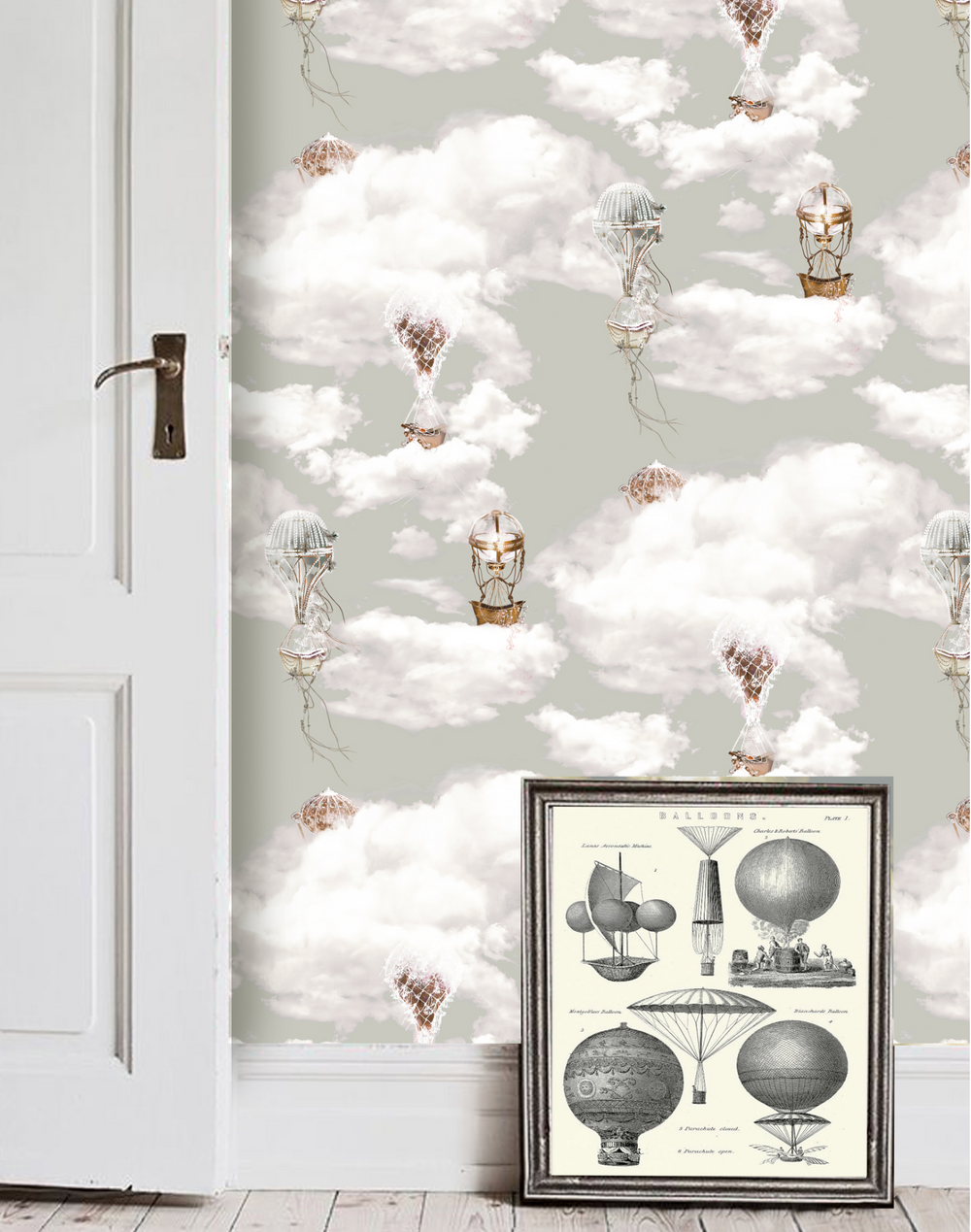 Good & Craft creates innovative, and whimsical patterns that are rich in details and sensual colors. Whimsical hot air balloons float through the sky amongst shimmering clouds. Printed on a pearlescent paper for luxurious shine with a mother-of-pearl effect.