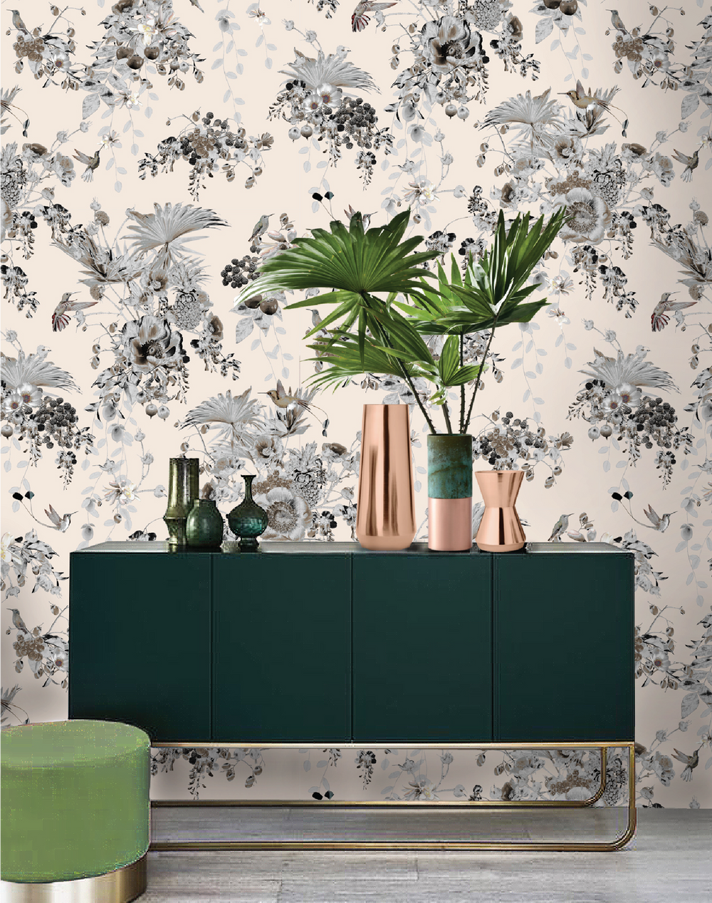 Hummingbirds Secret Garden is part of the Tropical State of Mind collection, inspired by the vibrant flora and fauna of tropical climates. Rich colors are key and bringing a tropical feeling in every home.