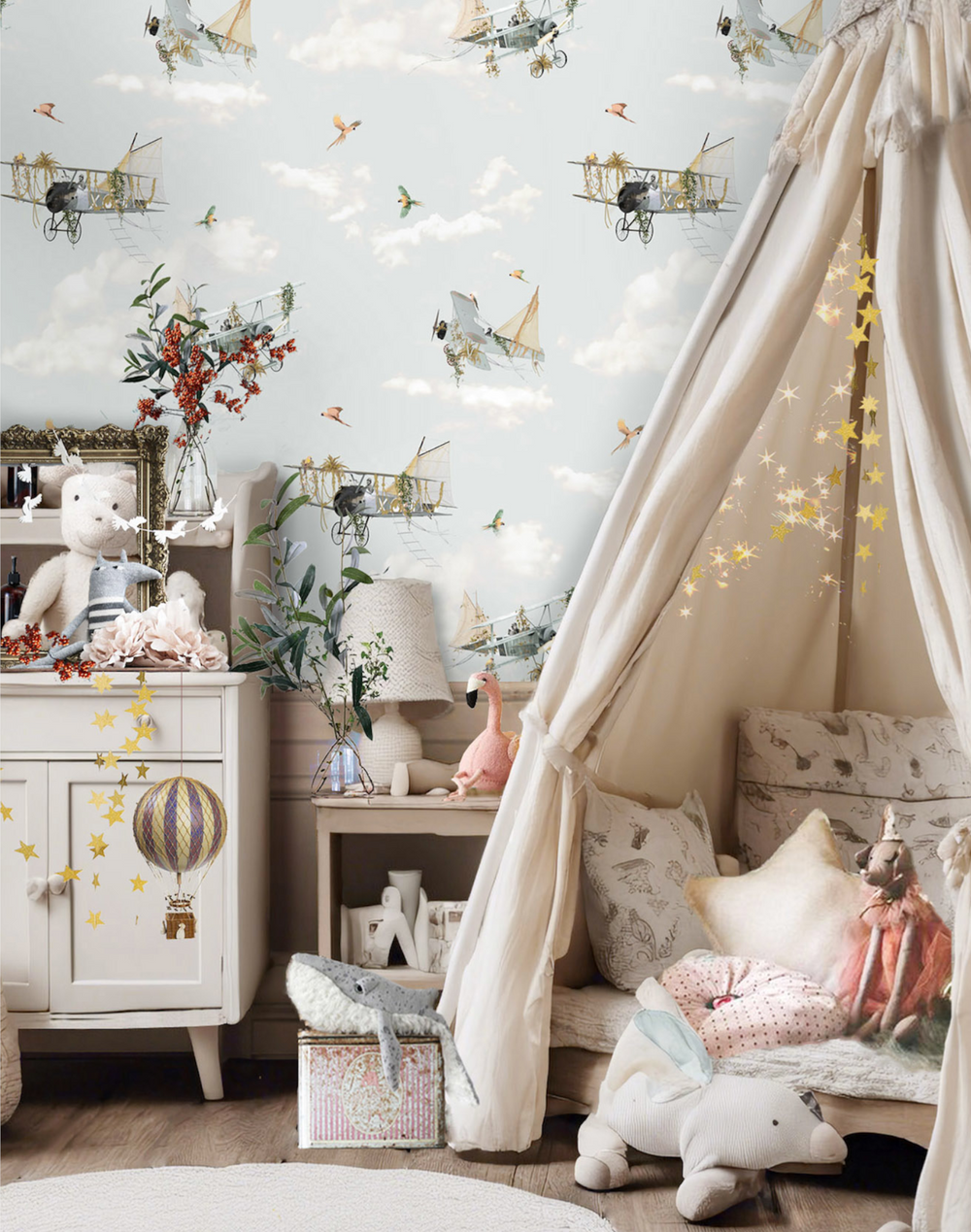 The Aviators pattern is part of the Aeronauts collection, inspired by the craze of early aviation and their brave inventors. A fun and surrealistic collection not just for nursery, but also for those who like patterns which are a little different.