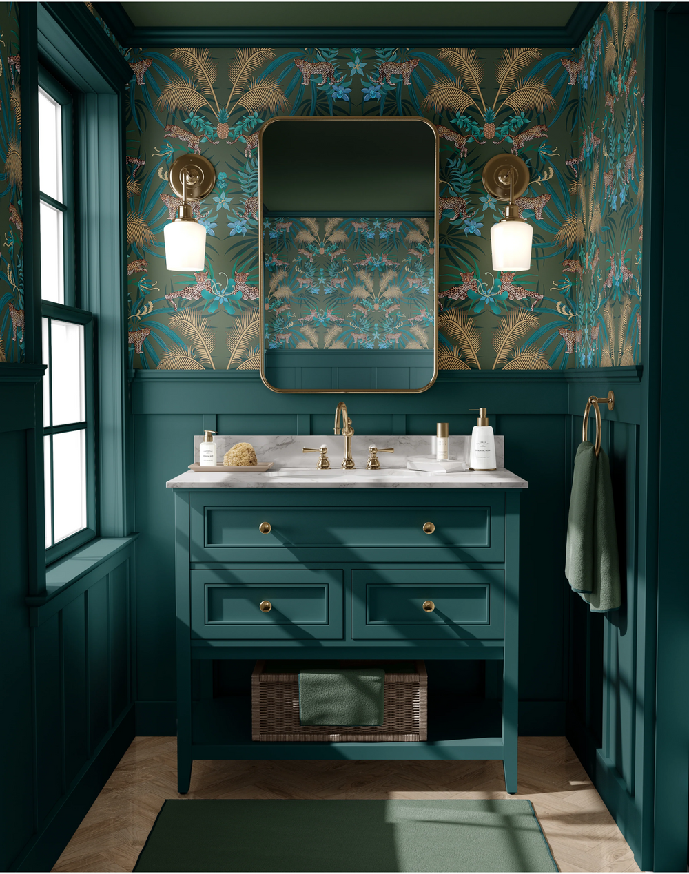 The Leopard Luxe wallpaper collection was borne of Becca’s love of juxtaposing wildlife amongst ornament. With leaping leopards amongst golden palms and pineapples, the result is a majestic design of striking elegance, which creates a beautiful focal point in an interior.