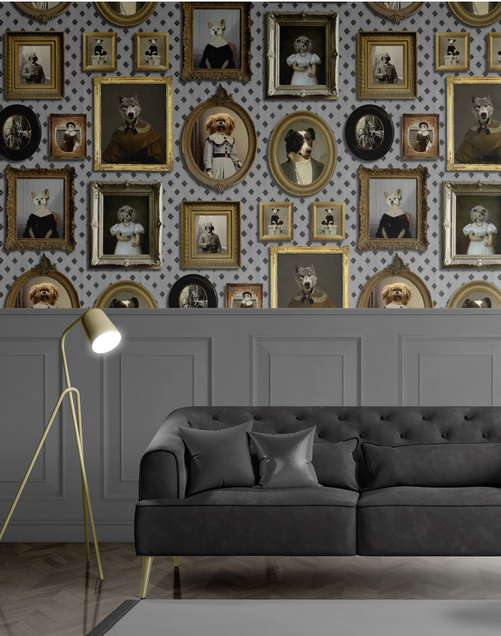 The designer, Charlotte Cory, admits she could never live without a dog, or two, or three. Life is simply not long enough to enjoy these wonderful creatures (Charlotte is never less than over-enthusiastic!). So what can be better than a wall full of them! And not just any dog - top dogs! Canines who have had their likeness captured by top portrait artists (like Charlotte Cory herself!). Cave canem! said the Romans. Beware of the dog. Beware of all these gorgeous creatures - you will fall in love and never be able to live without them.