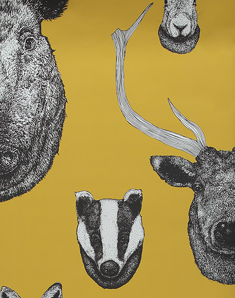 "From ancient deer to a rather dashing wild boar all are here on this Vestige wallpaper design from Lisa Bliss that features native British animals on a rich yellow color background. Intricately hand drawn British beasts that would have commonly dressed the walls of our past aristocracy can now adorn the walls of your lodge or city pad with our modern take of a bygone era."