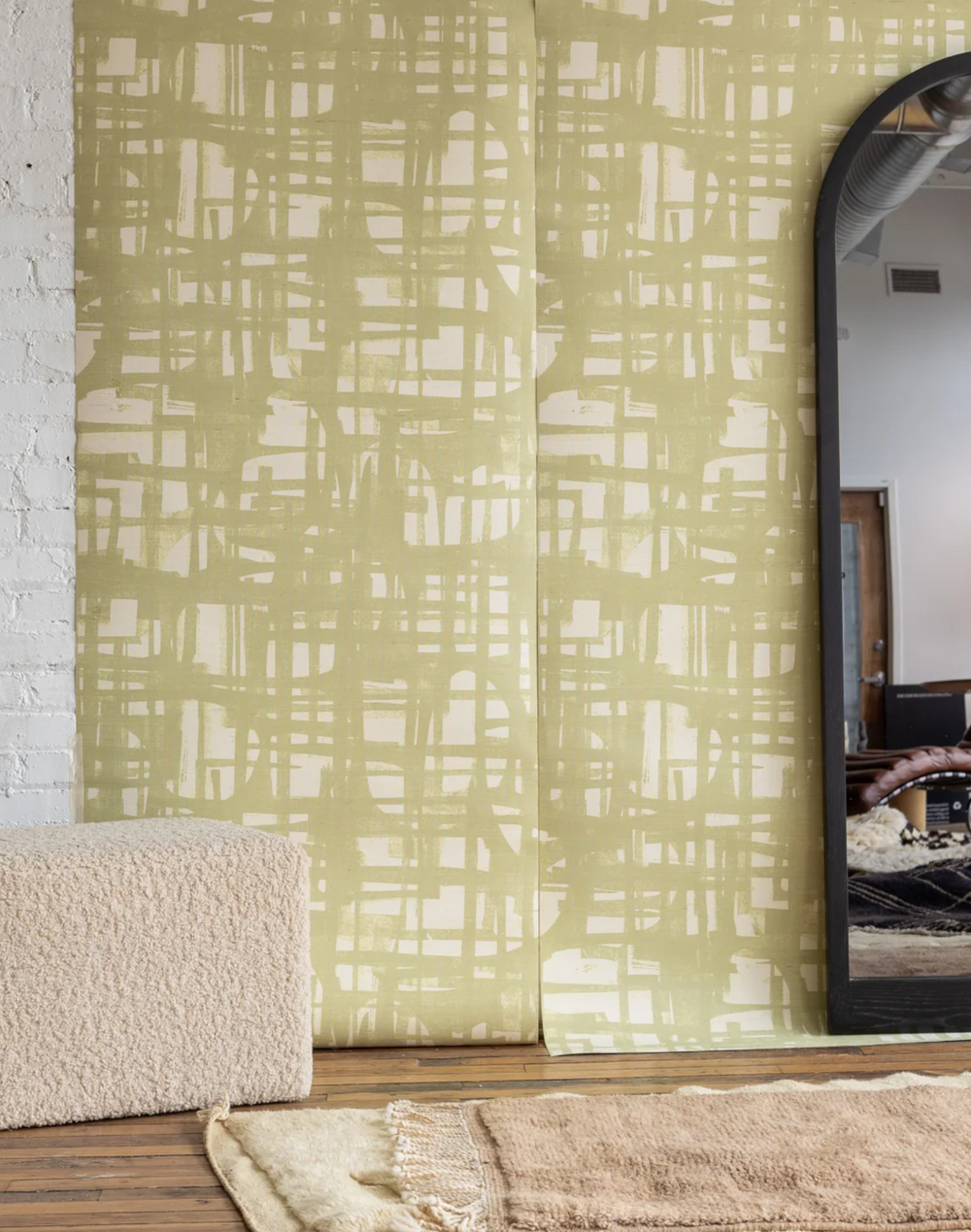Inspired by the rhythmic qualities and expressiveness of modernism, Monoprint uses an original geometric painting as an imprint, layered to create a single opaque pattern. Architectural and high impact, this wallpaper is offered in a palette of intriguing hues.