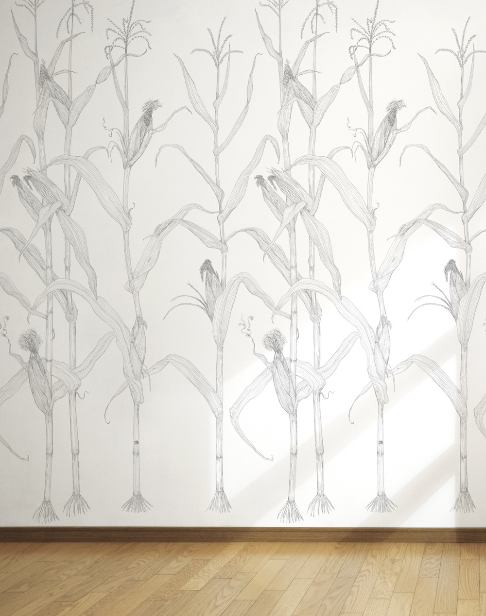 Inspired by growing up in the farmlands of the Eastern Shore of Maryland and the cyclical life of corn, Merenda designed Corn Rows. These large and beautiful corn stalks are intended to bring peace and spaciousness to your wall.