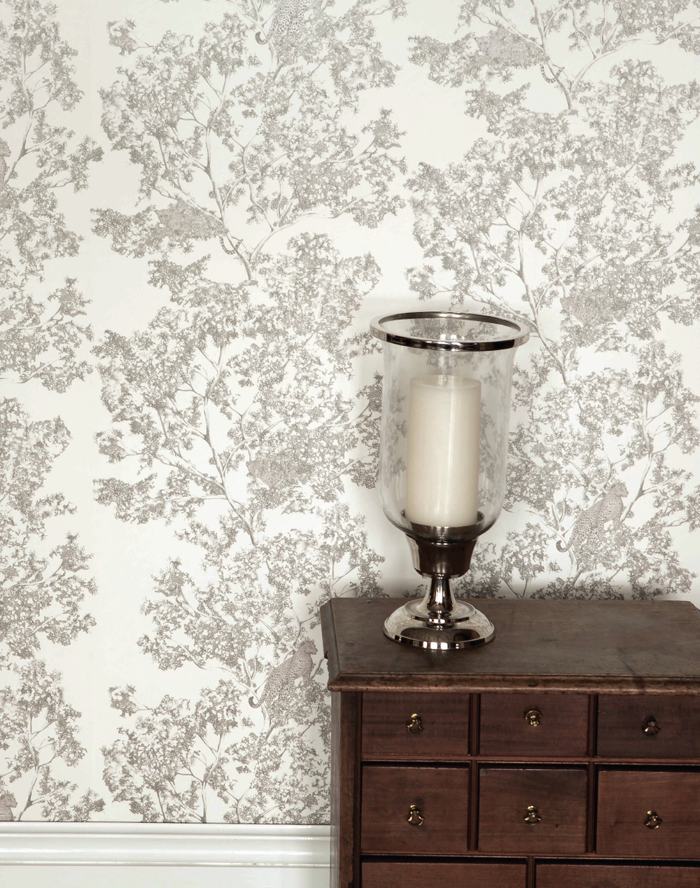 Camouflage is another of Juliet Travers signature designs and works beautifully in rooms with high ceilings and a lot of natural light. This design will also benefit rooms with lower wall heights as the never-ending foliage creates an illusion of much higher walls and will naturally provide extra height to your room.