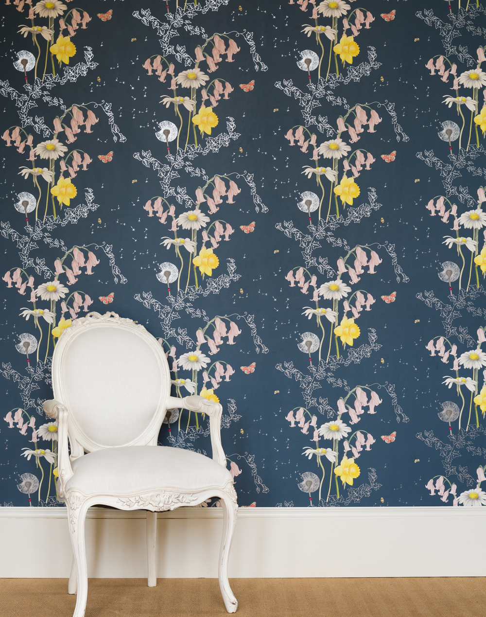 Juliet has hand drawn and created every design in her garden studio in Hampshire. Each motif is then printed in traditional English factories using the iconic gravure printing method. Every wallpaper is colored using hand mixed dyes and printed on sustainable papers with weighty linen-cotton cloths digitally printed to match.