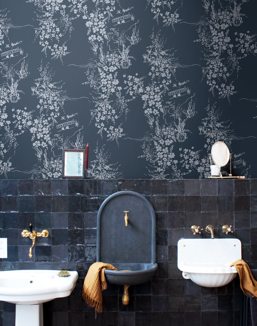 This wallpaper touches on fragments of memories, intertwined with a stylized interpretation of the unruly rambling bougainvillea. ‘Isadore’ is a tale entirely fabricated by the artist, Ronelle Pienaar Jenkin.