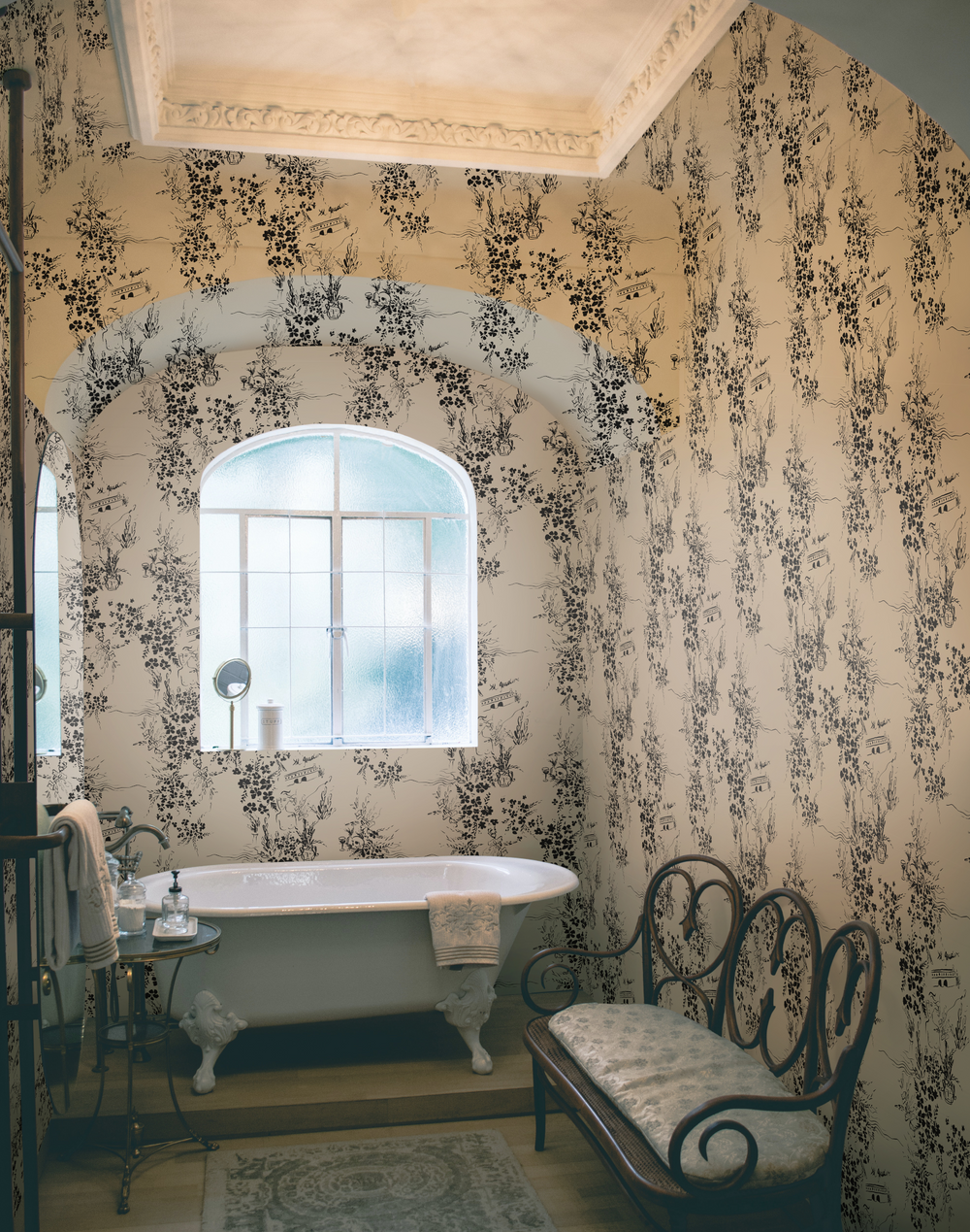 This wallpaper touches on fragments of memories, intertwined with a stylized interpretation of the unruly rambling bougainvillea. ‘Isadore’ is a tale entirely fabricated by the artist, Ronelle Pienaar Jenkin.