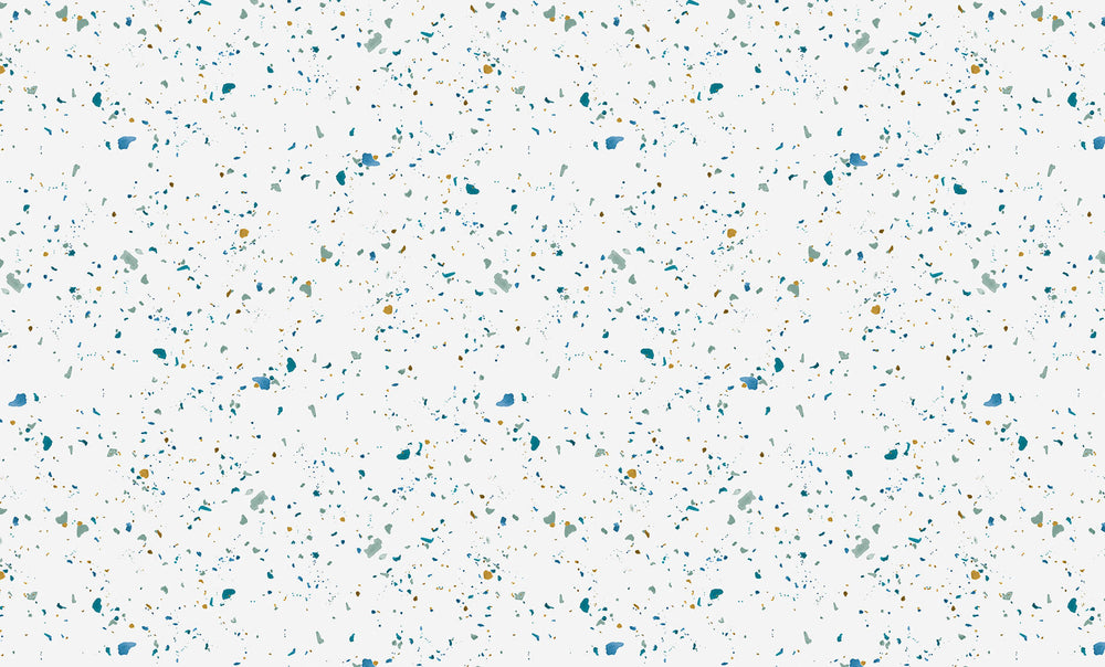 Shades of teal, ochre, and sage green on a white background