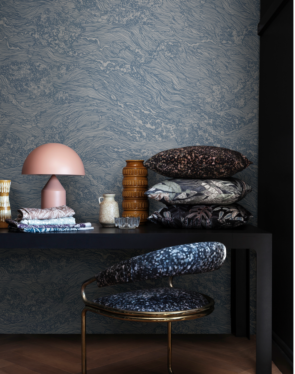Digital enlargement of handmade patterns, illustrations and paintings make LEMON wallpapers truly unique. Here is a pattern from the LemonxAureum collection.