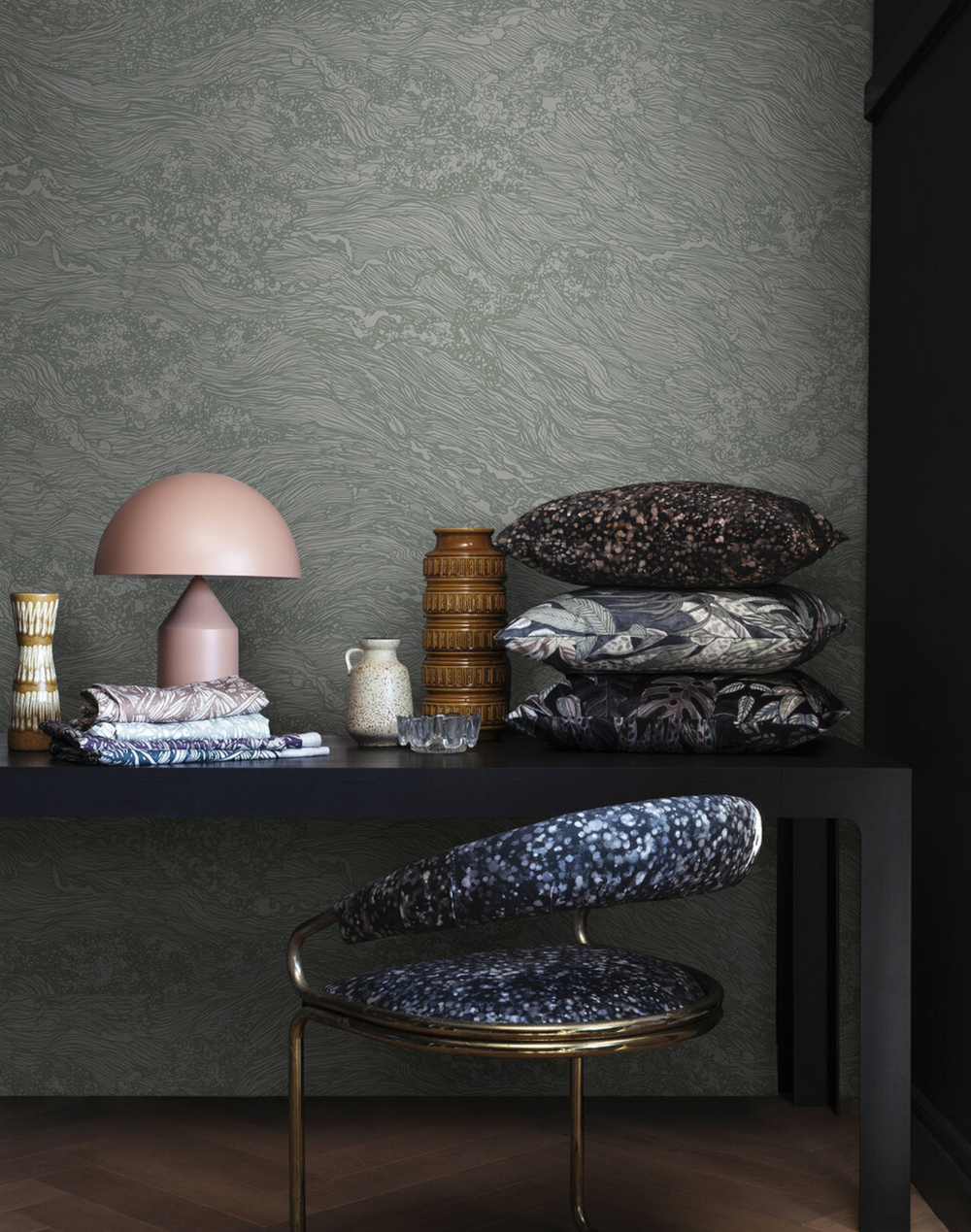 Digital enlargement of handmade patterns, illustrations and paintings make LEMON wallpapers truly unique. Here is a pattern from the LemonxAureum collection.