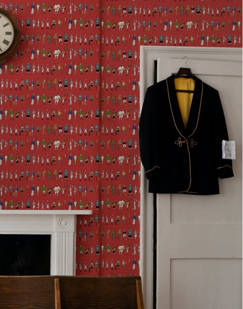 Multi colored illustration on a red background