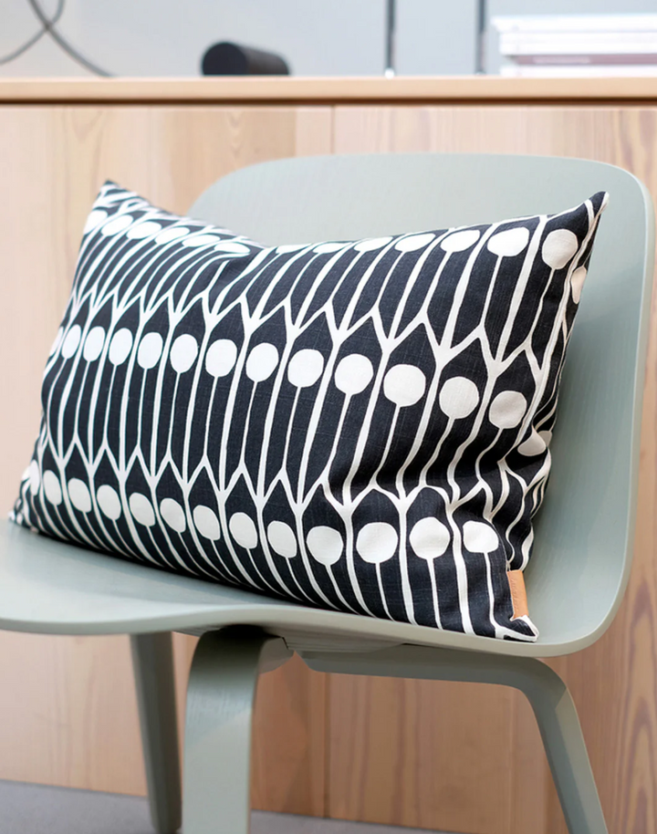 Feathers is created with inspiration from the graphic language of birds feathers, striking, visually strong and an interesting. Feathers are also used to make arrows or in headpieces by tribes and mankind. They signal identity, meaning and beauty, interpreted by Camilla in our print.