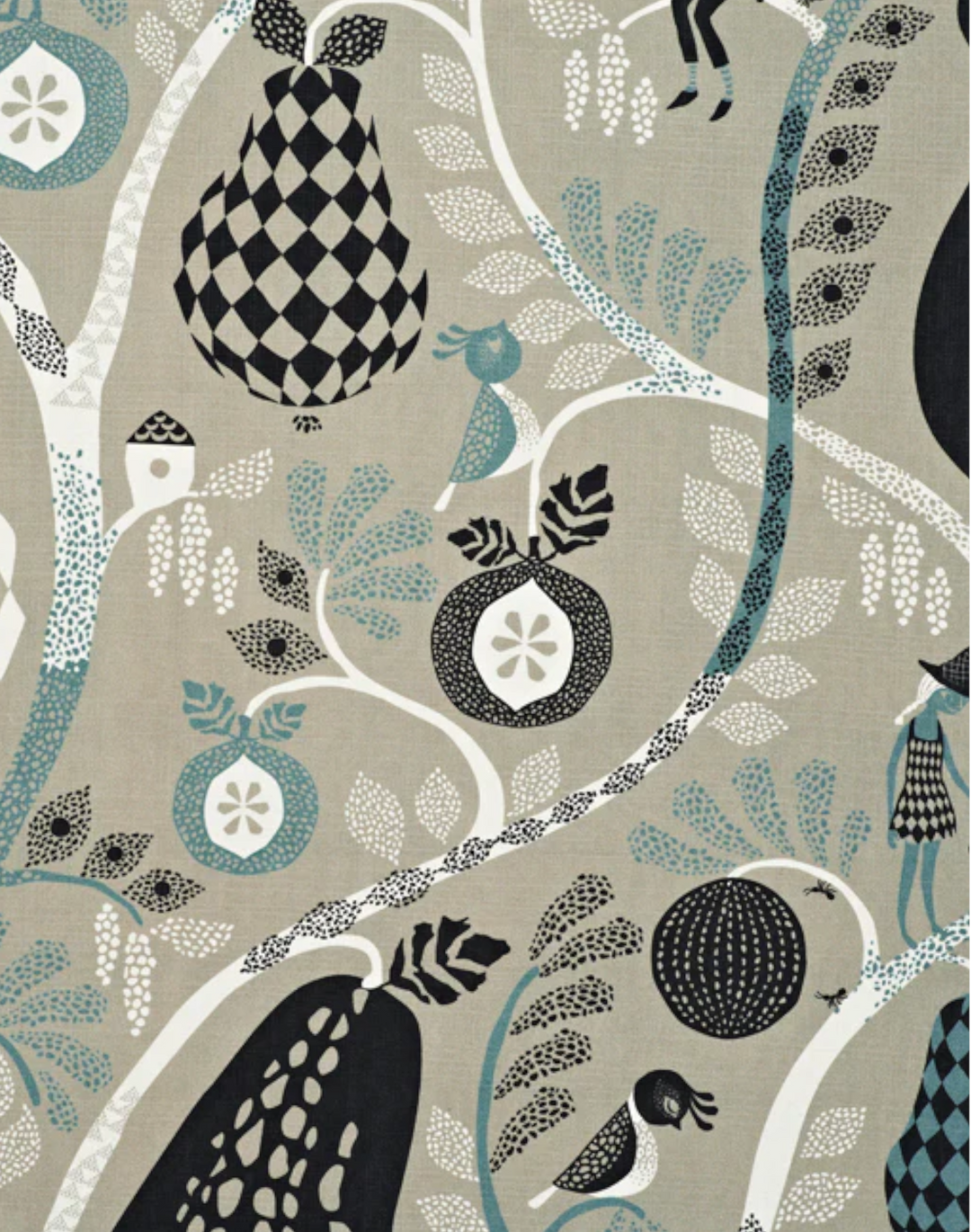 Fruit Garden is drawn by hand and is printed by our Master printers on our beautiful and sustainable high quality cotton weave, which make our patterns age with grace.