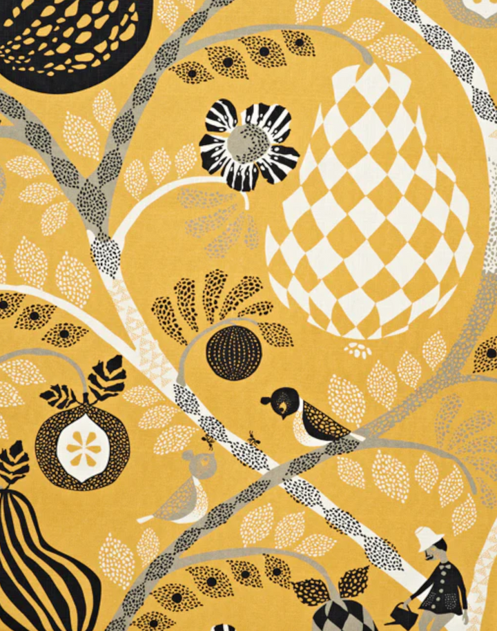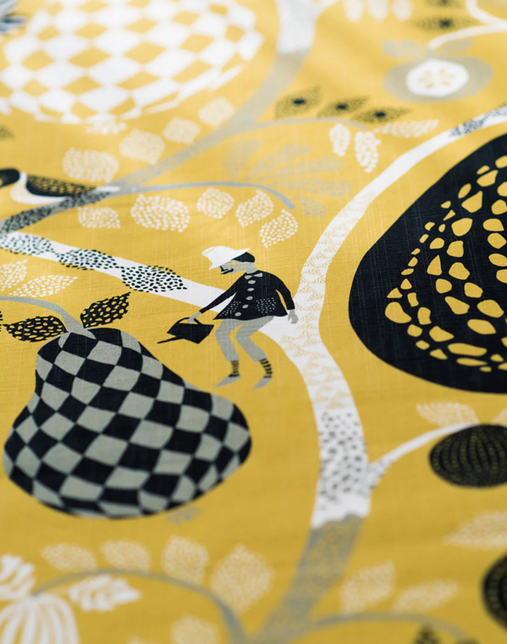 Fruit Garden is drawn by hand and is printed by our Master printers on our beautiful and sustainable high quality cotton weave, which make our patterns age with grace.