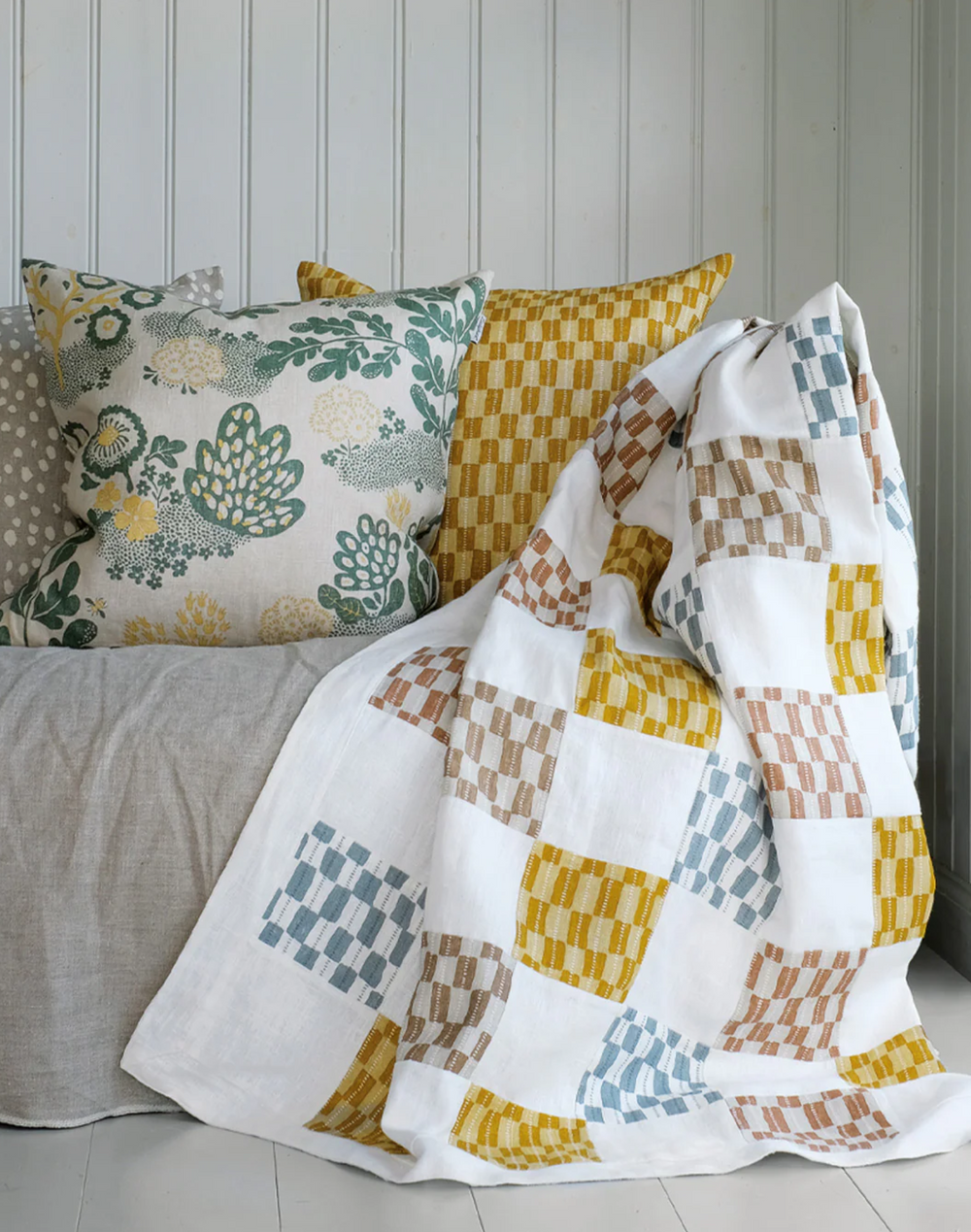 This is a contemporary version of a Swedish Gustavian style check, and it is truly useful in an interior. Drawn by hand this design has a structure to it but with a lovely element of imperfect lines. With details of small graphics stitches and quirky lines it becomes soft, crafty and comfortable.