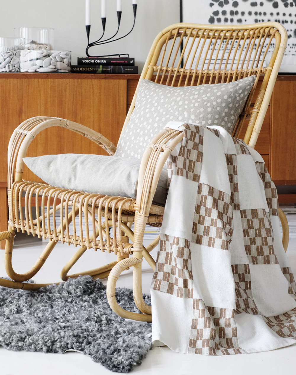 This is a contemporary version of a Swedish Gustavian style check, and it is truly useful in an interior. Drawn by hand this design has a structure to it but with a lovely element of imperfect lines. With details of small graphics stitches and quirky lines it becomes soft, crafty and comfortable.